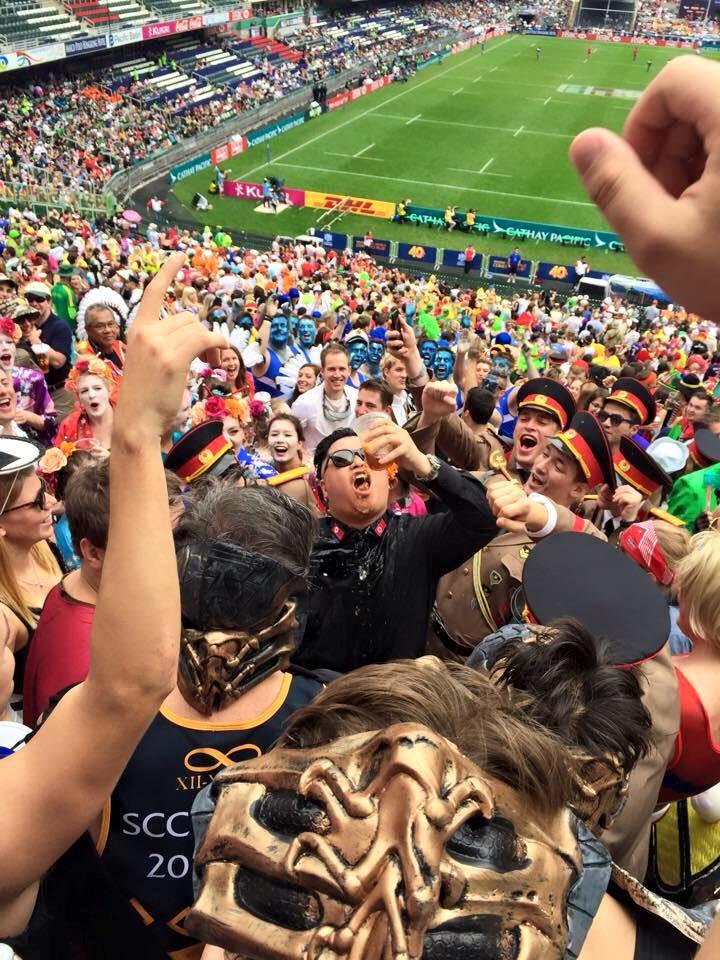 The supreme leader enjoying a beer at the Hong Kong Rugby 7's